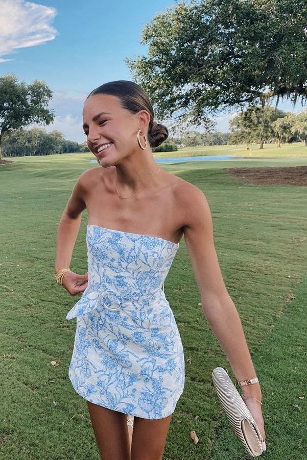 Bravo Floral Print Homecoming Dresses Strapless Mini Party Gown, LTP3013