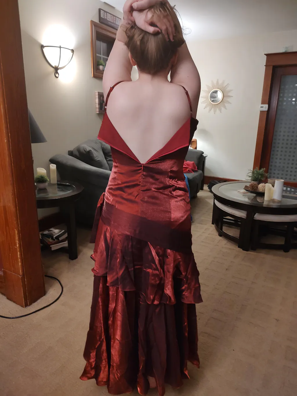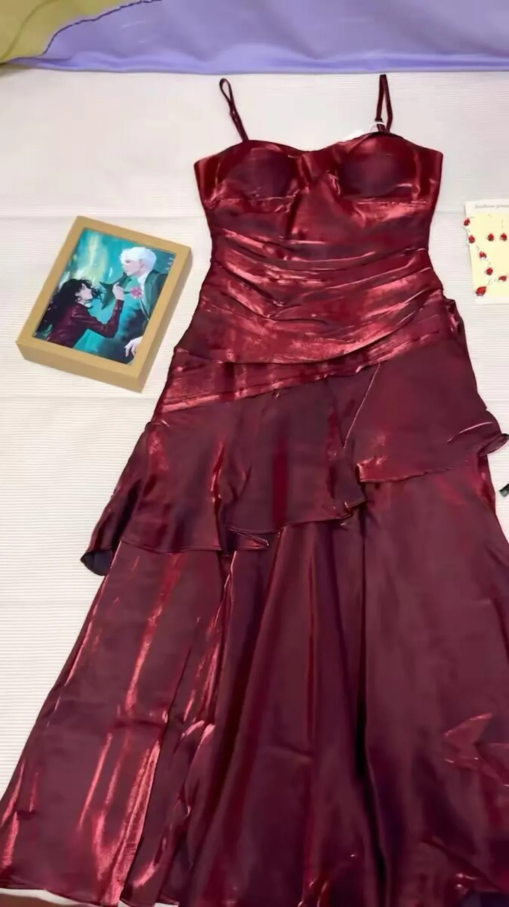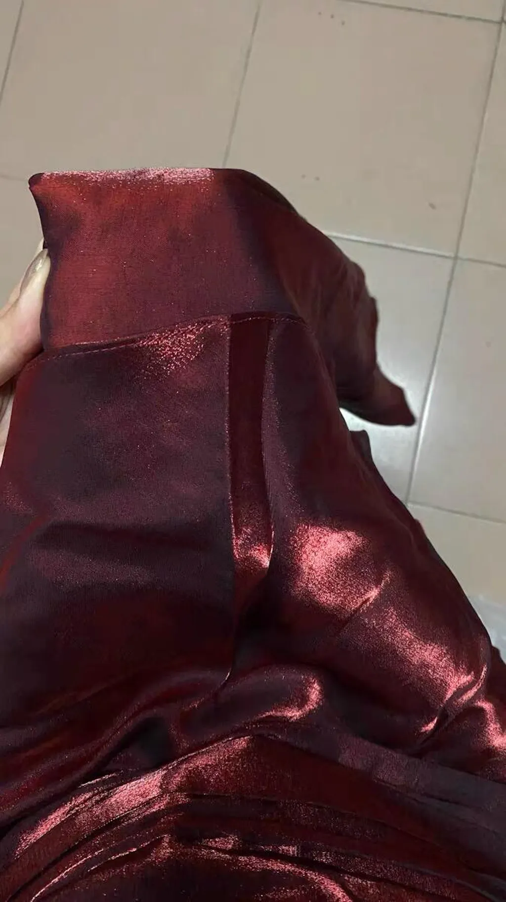 Make a stunning entrance at your prom or formal event with this elegant burgundy mermaid dress. The figure-flattering silhouette features romantic ruffle details and delicate spaghetti straps that create a timeless, sophisticated look.