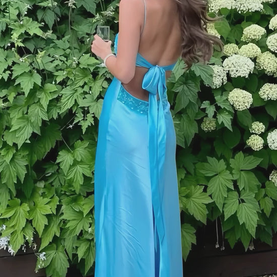 Charming Blue Sheath Prom Dresses Spaghetti Straps Beaded Party Dress,LTP4069