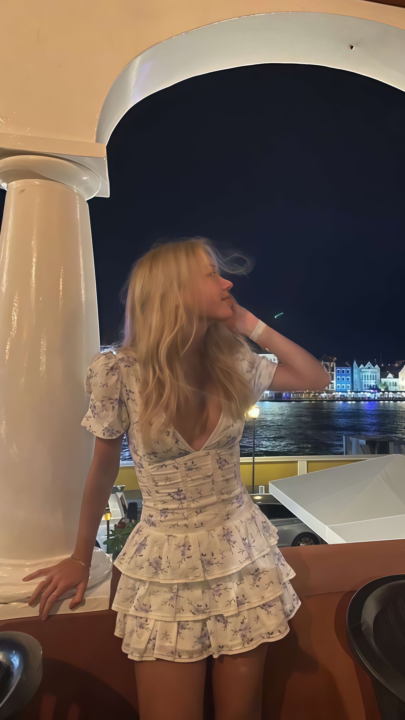 Cute Little Flowers Mini Homecoming Dress, Girls V-Neck Ruffle Party Dress, LTP3711