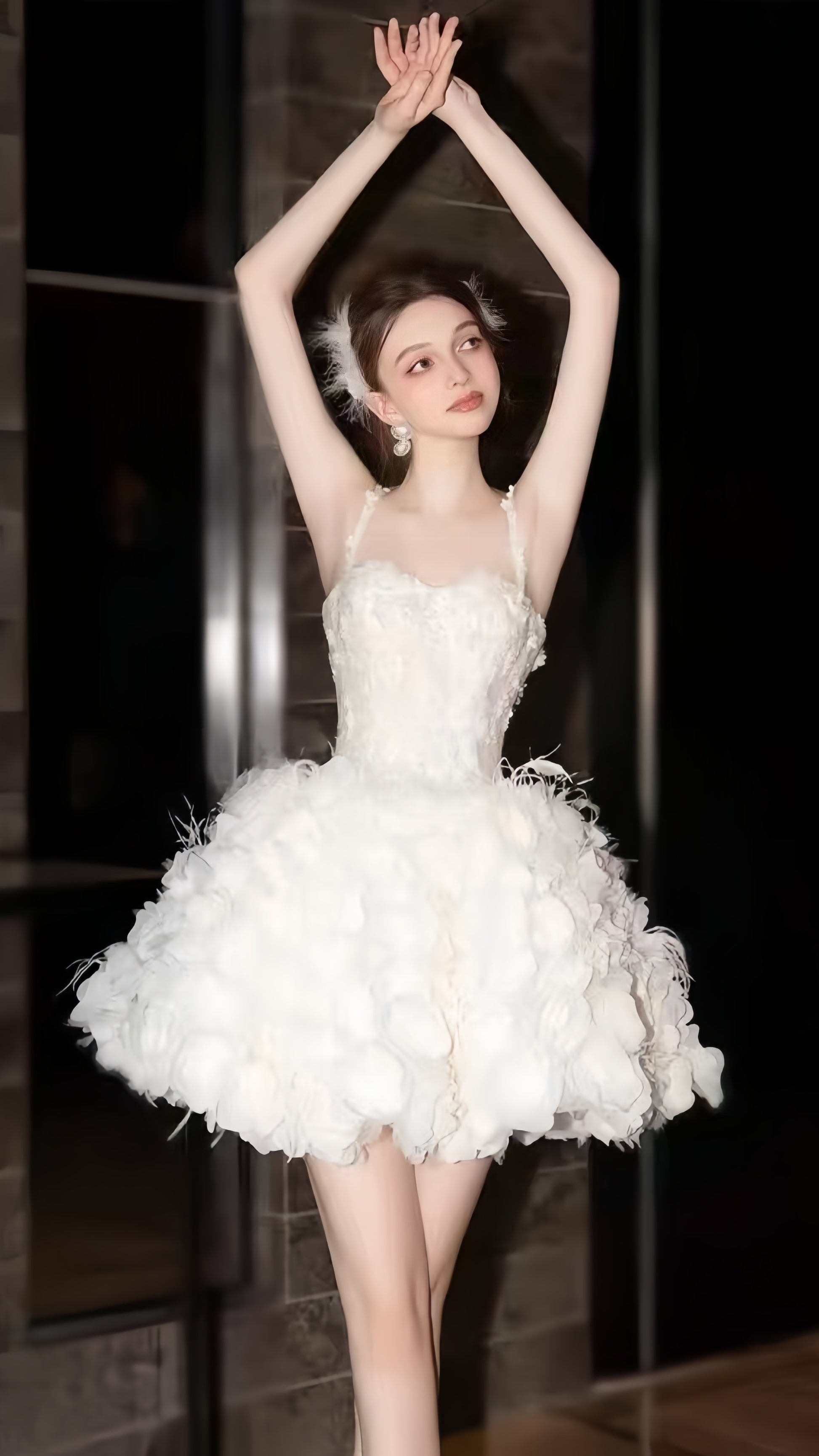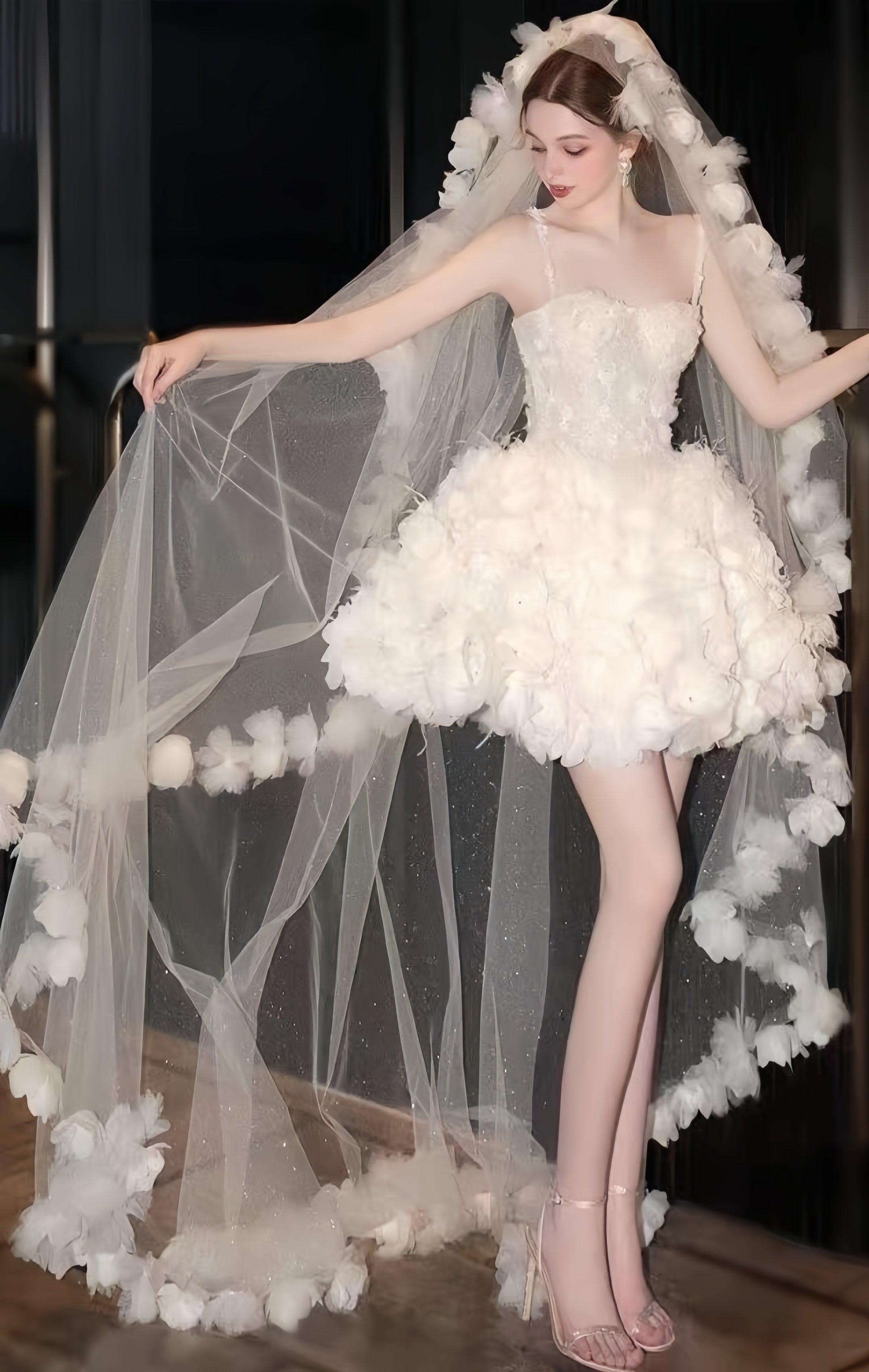 France Romantic Spaghetti Straps Wedding Dresses Floral Short Light Weight Bridal Dress,LTP3924