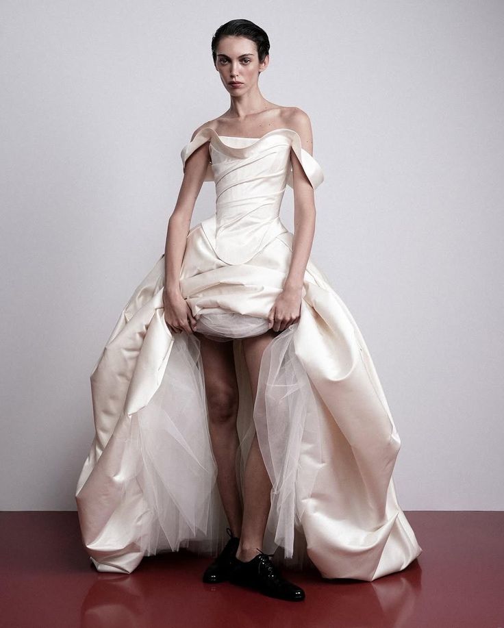 Off The Shoulder Ivory Wedding Dresses A-line Pleated Bridal Dress,LTP3807