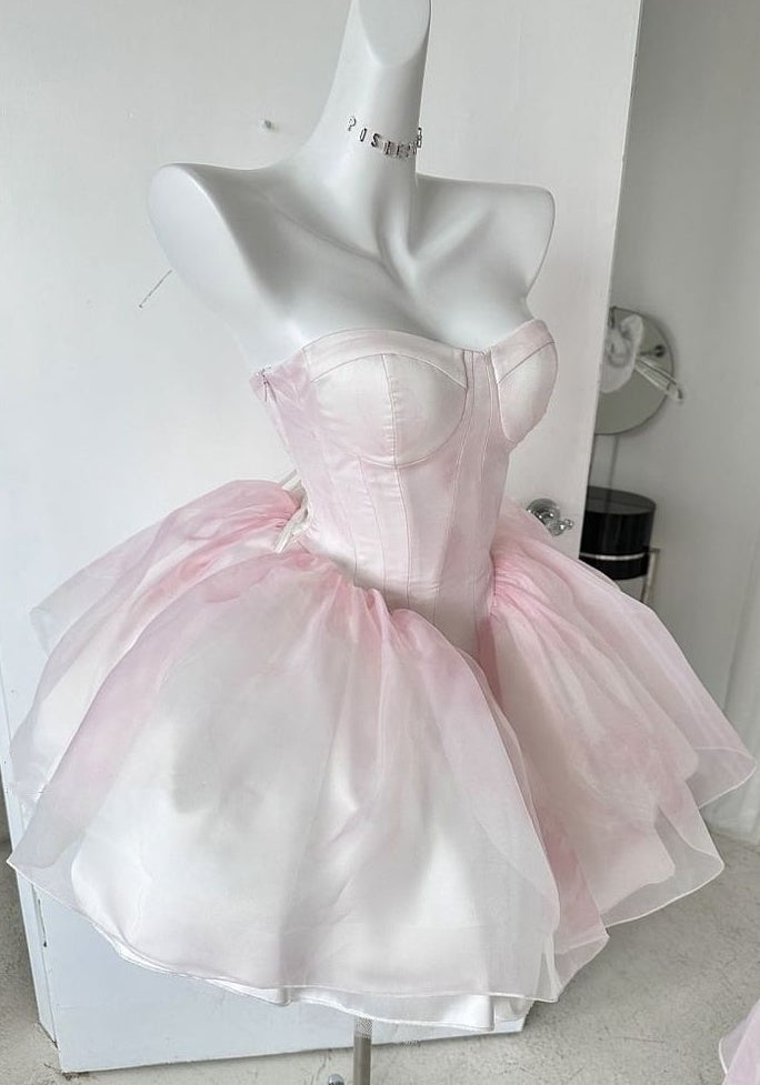 Princess Light Pink Ball Gown Sweetheart Organza Party Dress Homecoming Dresses, LTP3800