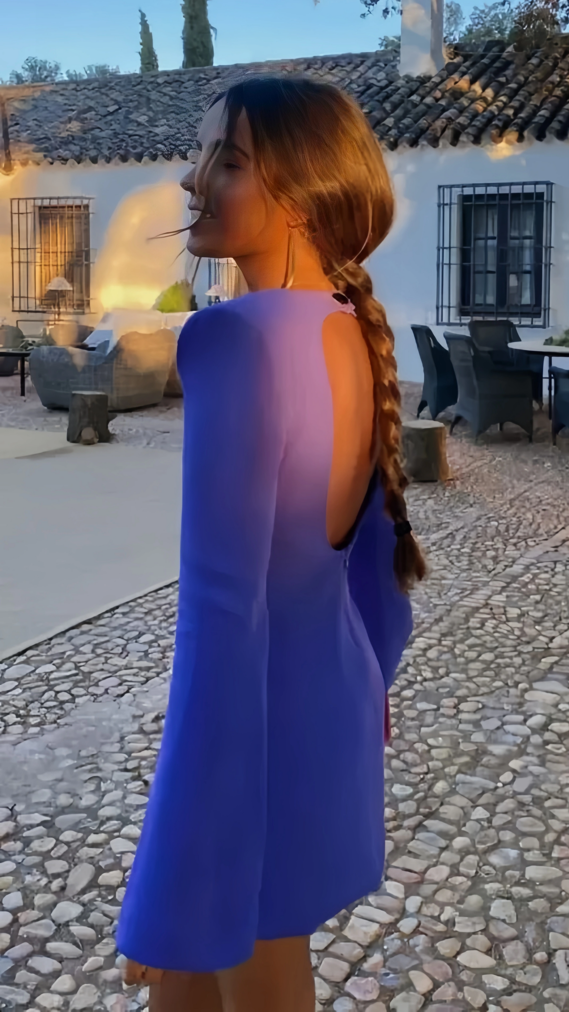 Purple Long Sleeves Party Dresses Open Back Homecoming Dress,LTP3851