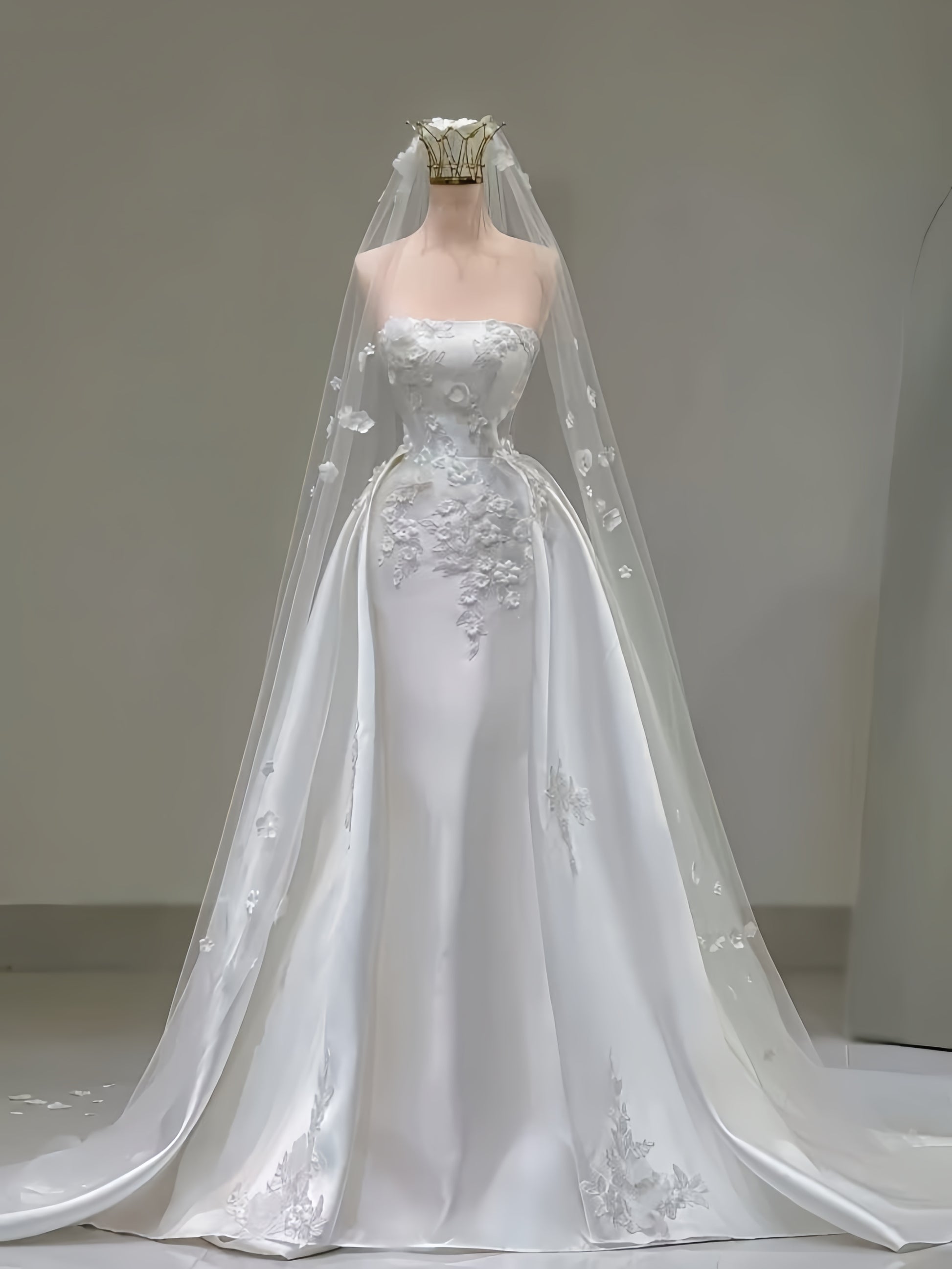 Strapless White Floral Wedding Gown Bridal Dresses, LTP3793