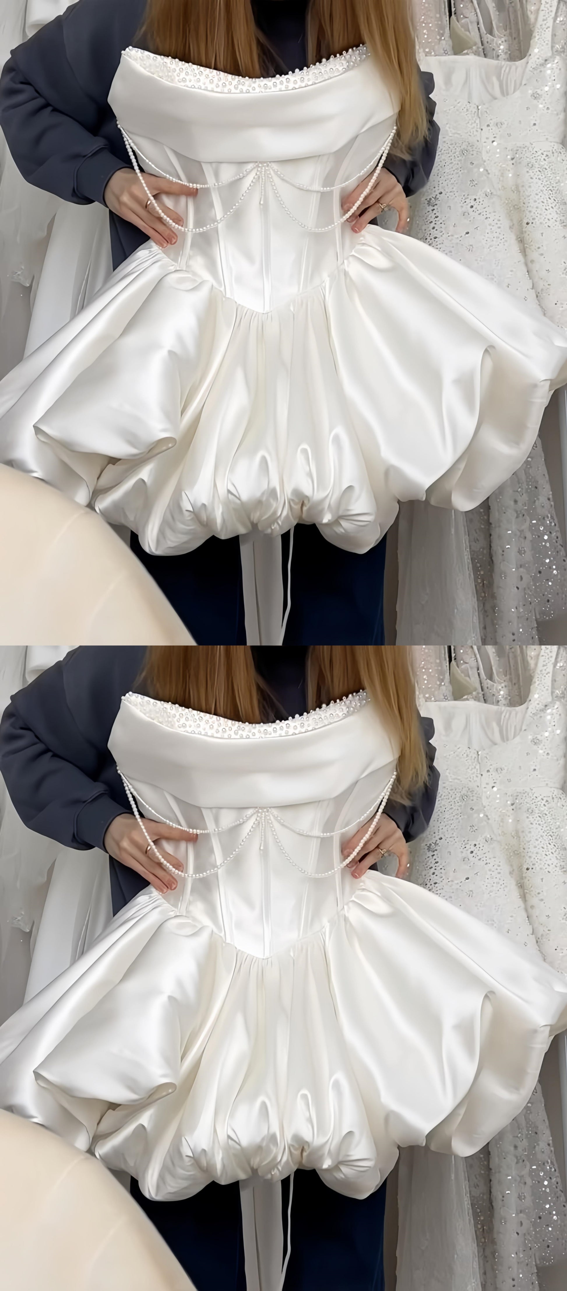 Strapless White Pearl Beaded Homecoming Dresses Short Wedding Gown, LTP3783