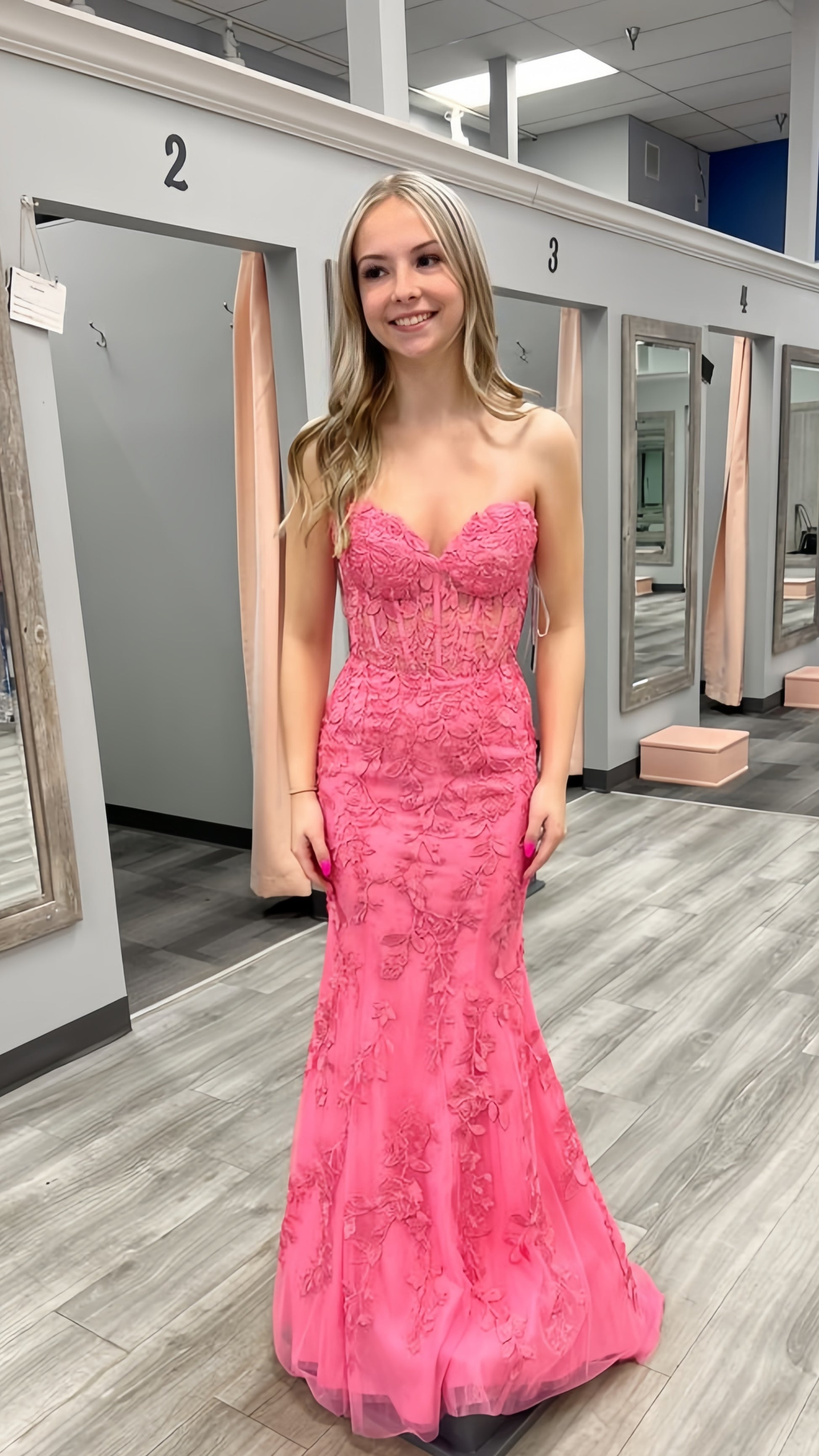 Sweetheart Mermaid Lace Prom Dress, Pink Sleeveless Party Gala Dress, LTP3740