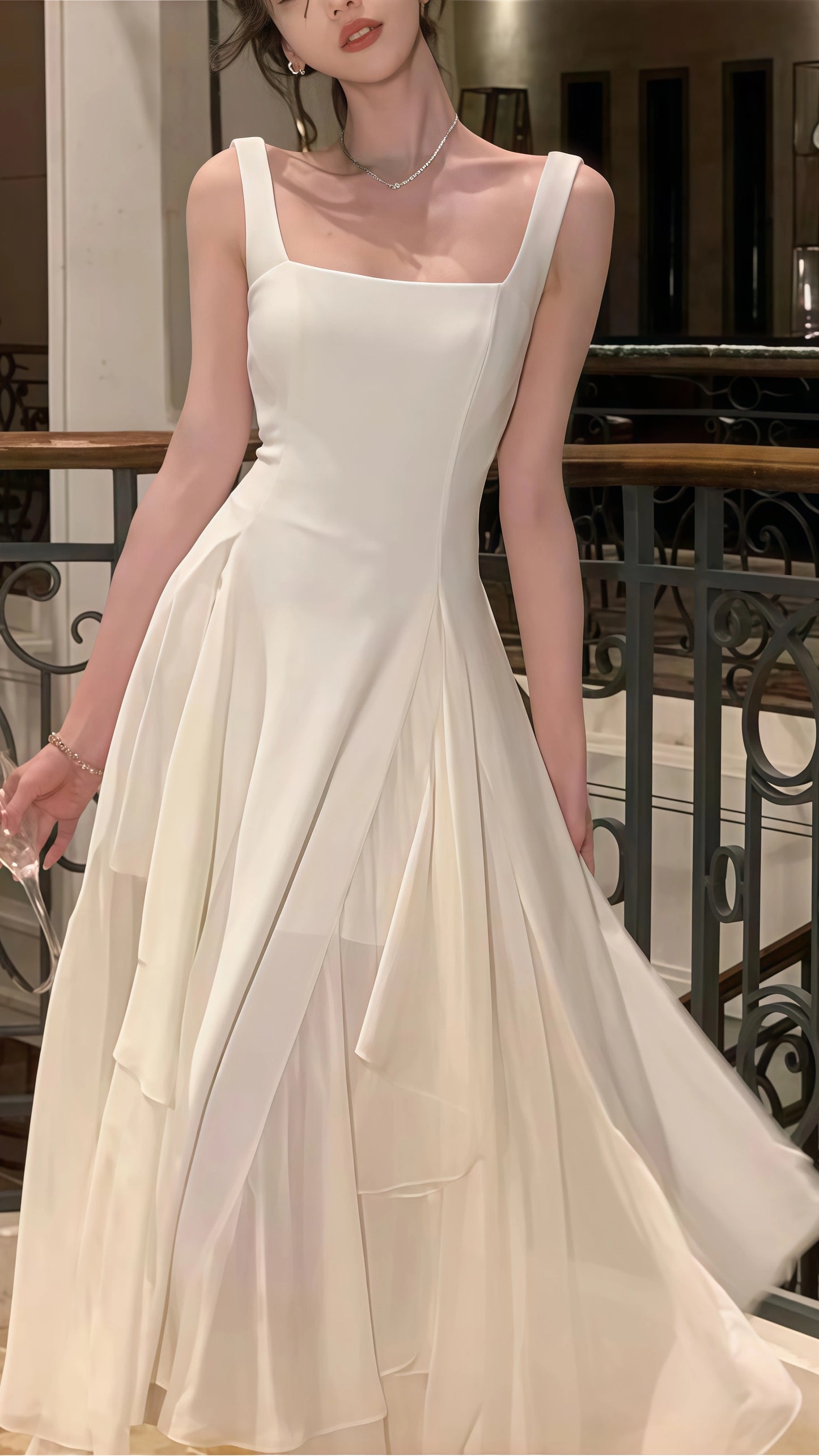 Vintage & Classic Ivory Chiffon Evening Prom Dresses