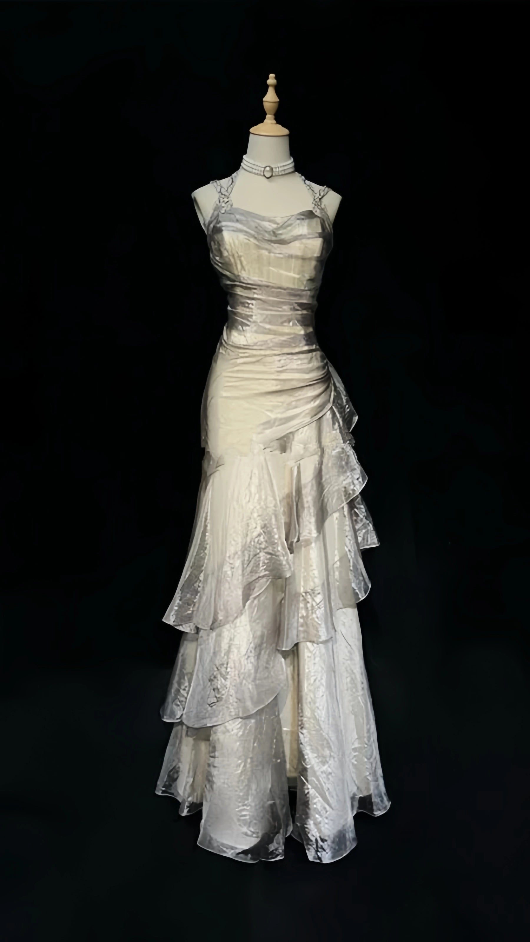 Vintage Silver White Prom Dresses Ruffles Dance Dress,LTP4127