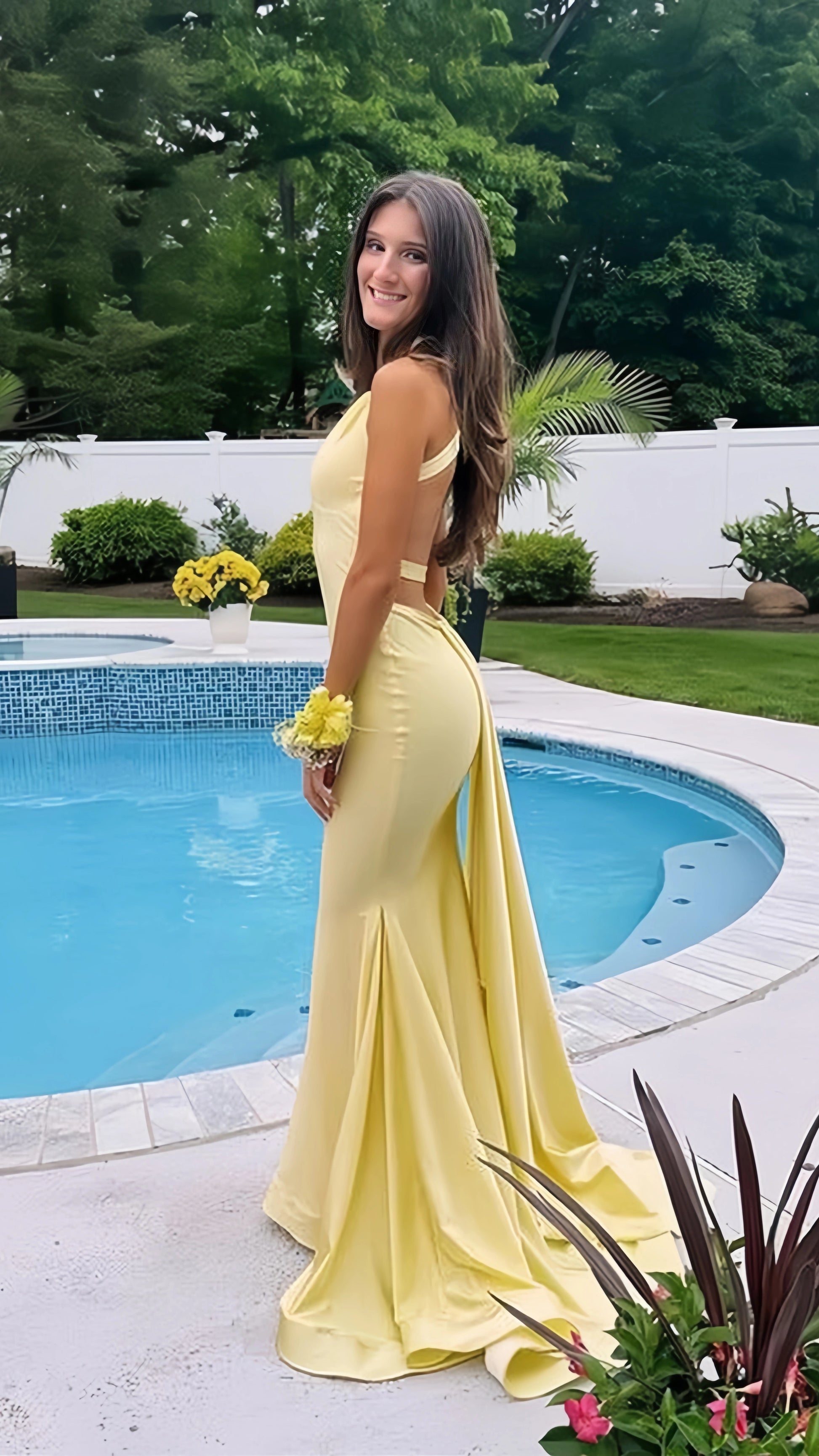Yellow V-Neck Mermaid Prom Dresses Long Evening Party Dress With Cross Back,LTP4104